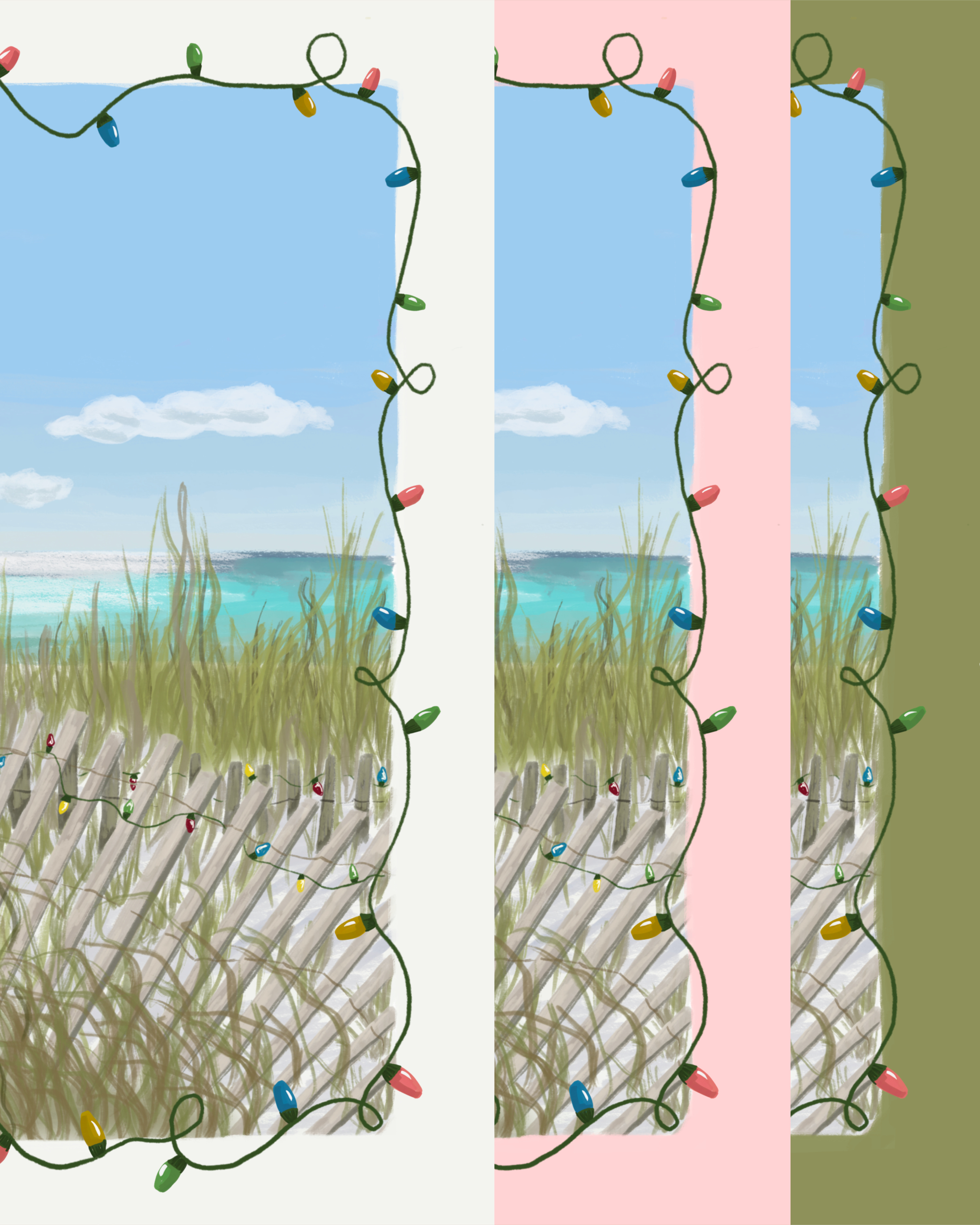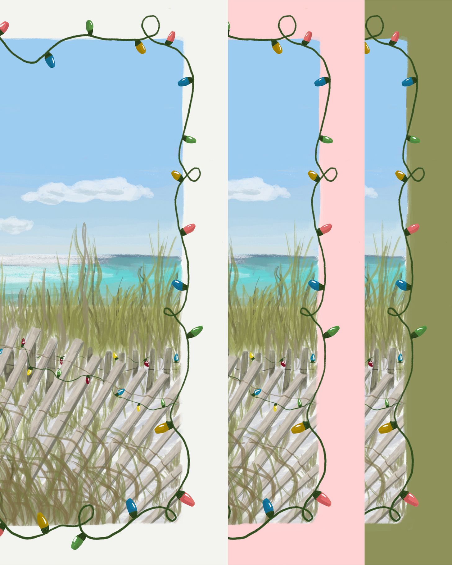 Finally, an update on Coastal Christmas! I sent off my tile design to get a sample set manufactured that I cannot wait to share with you! My mat design is below, but still deciding on border color. I thiiink we will go with green but I love all three. My goal is to have these available in October/early November.