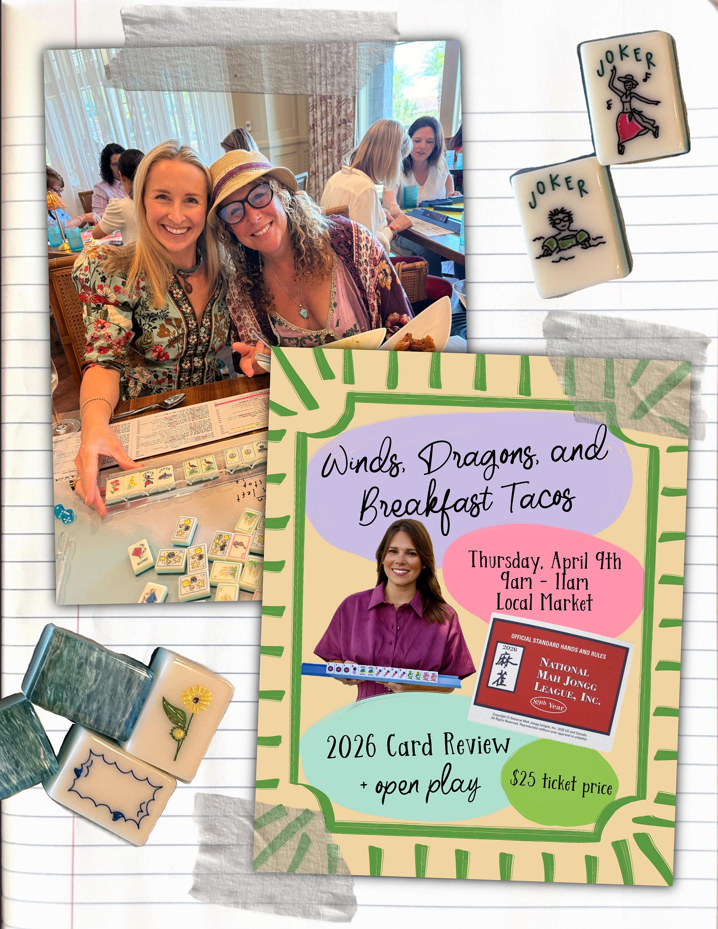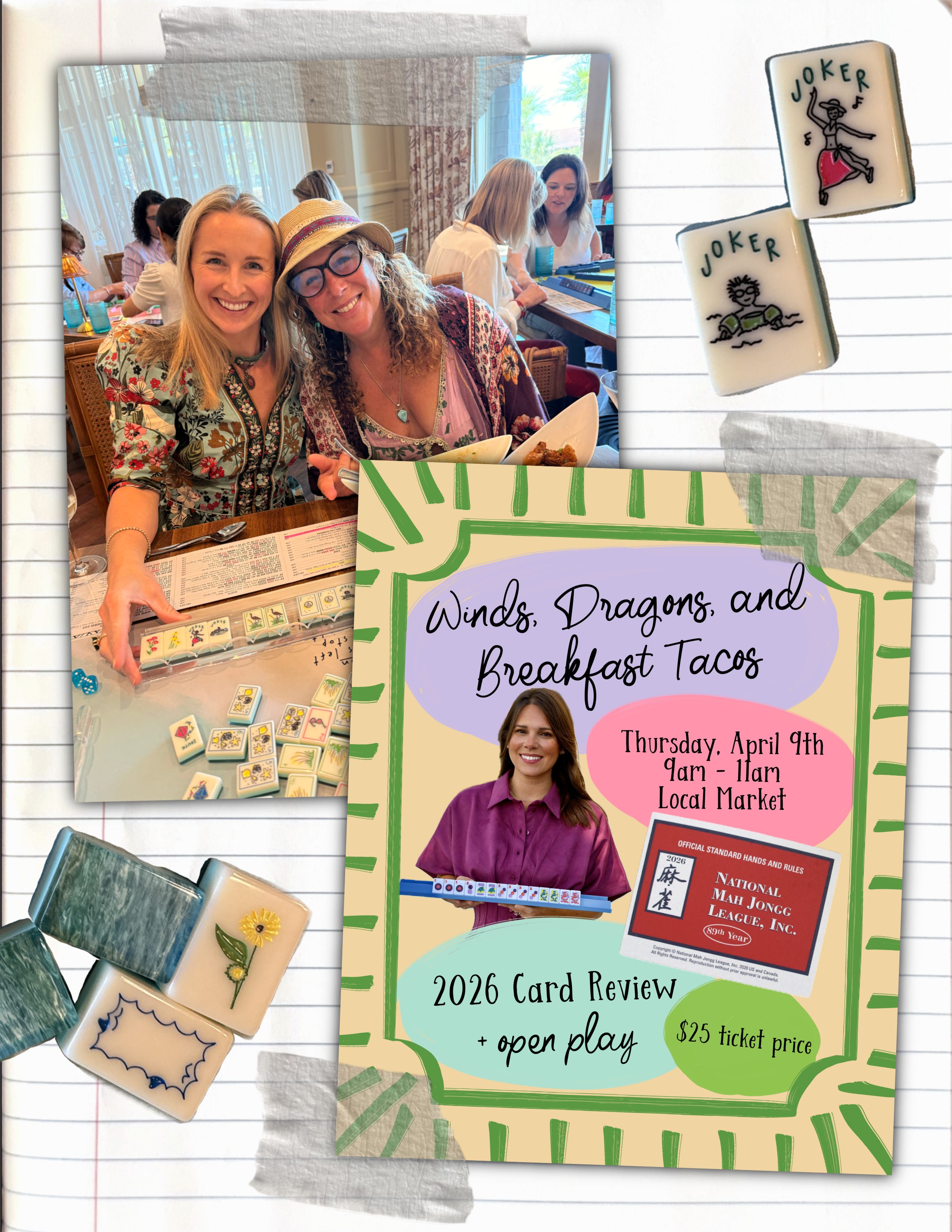 In the meantime, I’d love to invite you to come see and play with my set in person at my friend Morgan’s Mahjong Monday events at The Henderson here in Destin and at our upcoming card review and open play session at Local Market next week. You can RSVP for the card review session here and learn more about Morgan and her Mahjong Monday events on her Instagram here.