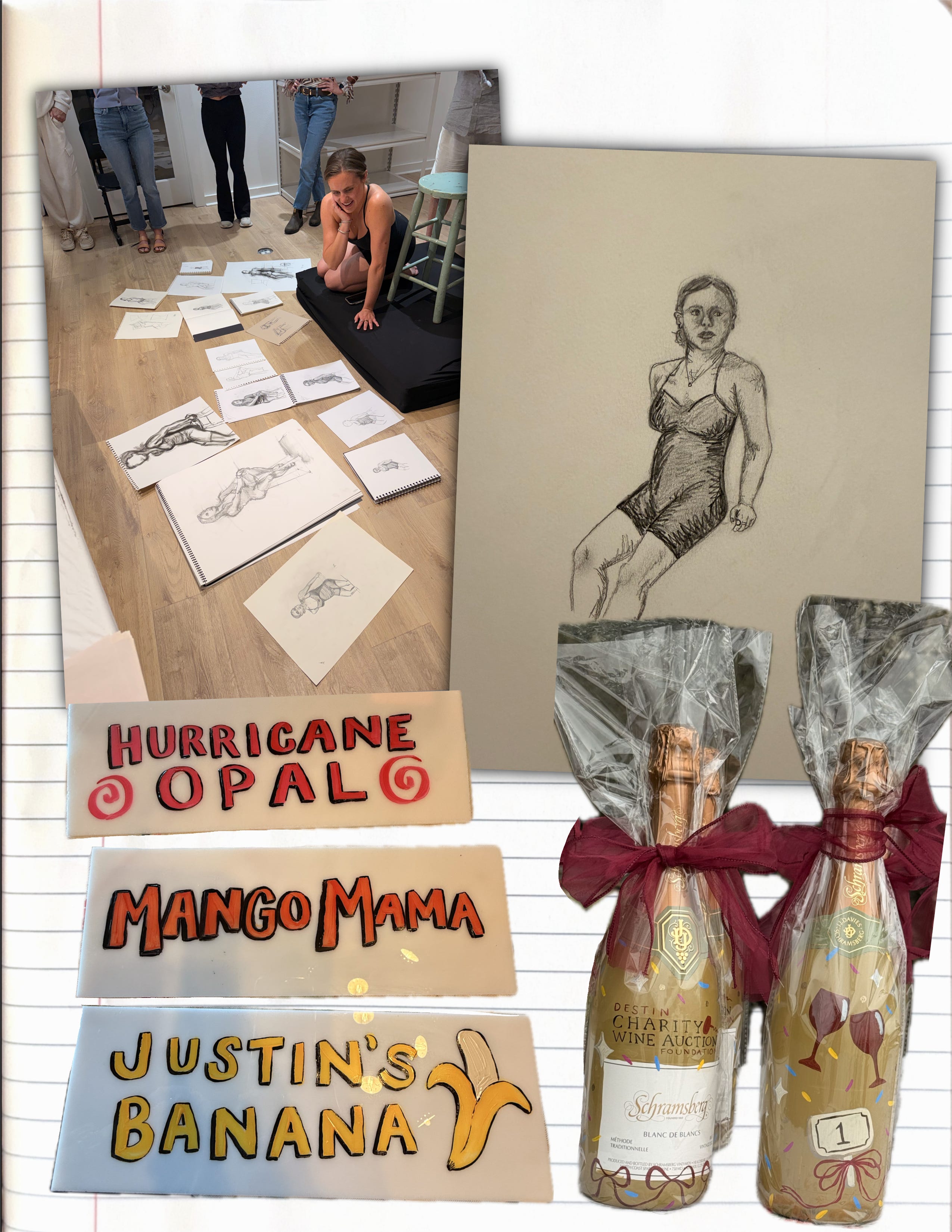 Ok, substack says I’m nearing the length limit so I’m going to try to wrap it up. Some favorite projects over the last month were new frozen drink machine signs for my husband’s beach bar The Sand Flea, custom painted wine bottles for Destin Charity Wine Auction Foundation, and a figure drawing session led by Lindsay Tobias, which I loved and can’t wait to repeat every month.